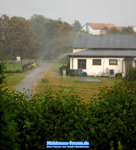 Starkregen über Vitte mit Gewitter