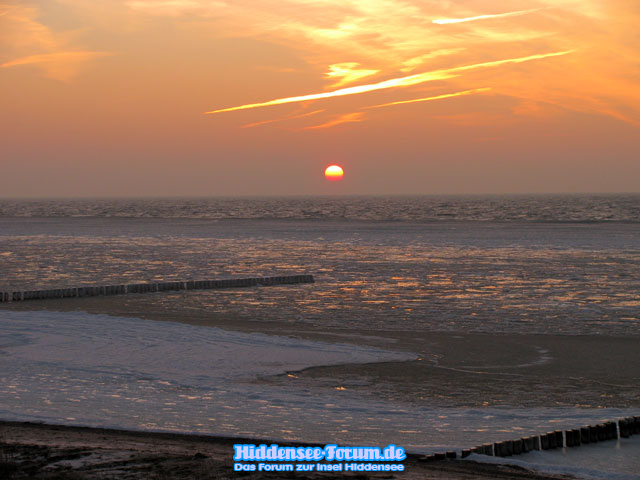 Sonnenuntergang am 29.01.2011 am Strand in Vitte, Süderende.