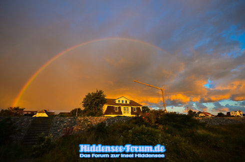 Das hätte ich nicht gedacht, als ich zum Sonnenaufgang am Bodden war. So farbintensiv habe ich ja auch noch keinen Regenbogen mit den entsprechenden Wolken gesehen. Da hat sich das frühe Aufstehen gelohnt.