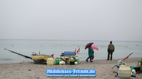 Das Wetter grau in grau, aber es gibt ja noch andere Farbtupfer am Strand
